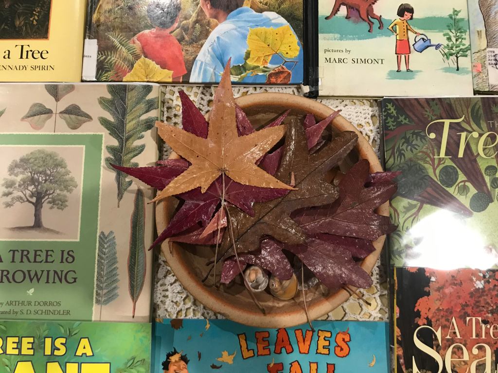 We also love the Let’s Read and Find Out science series. A Tree is a Plant gives a simple yet thorough overview of the inner workings of a tree, from seeds to roots to leaves, emphasizing humans’ enduring relationship with trees throughout the changing seasons. A Tree for All Seasons also shares a year in the life of a tree, but on an even simpler level just right for engaging Half Pint in our tree study, and we all enjoyed the gorgeous photos. A Tree is Growing and Crinkleroot’s Guide to Knowing the Trees aided our identification efforts. Both books were pretty enough to display on book racks throughout our home during the autumn season.