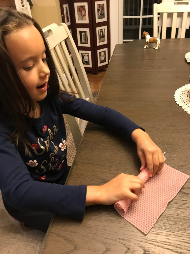 I feared that attempting crafts might add unnecessary chaos to the season, but instead it proved lifegiving, and I felt closer to the girls while crafting together. Flutterbudget possesses an uncanny knack for sniffing out “pea and stick” crafts a mile away – those “futilities” Charlotte Mason condemned – so I work hard to find crafts of the useful and beauty-bestowing sort. Both girls especially enjoyed rolling beeswax candles for our Advent wreath, and I reveled in the planet’s one-and-only mess-free kids’ craft.