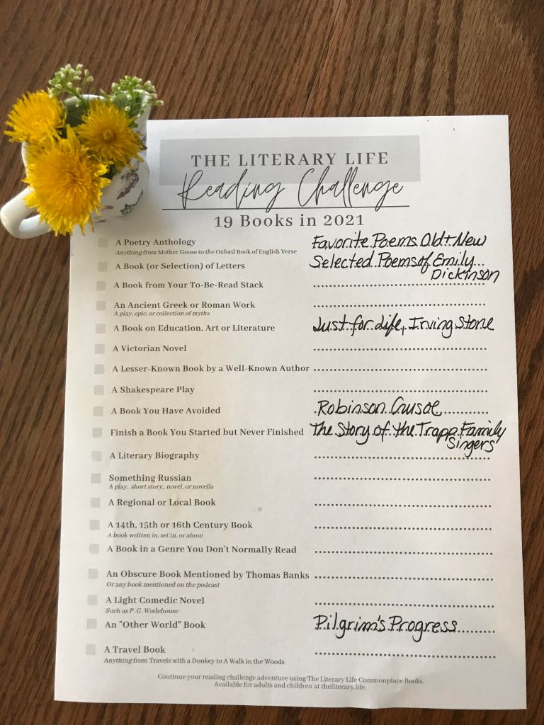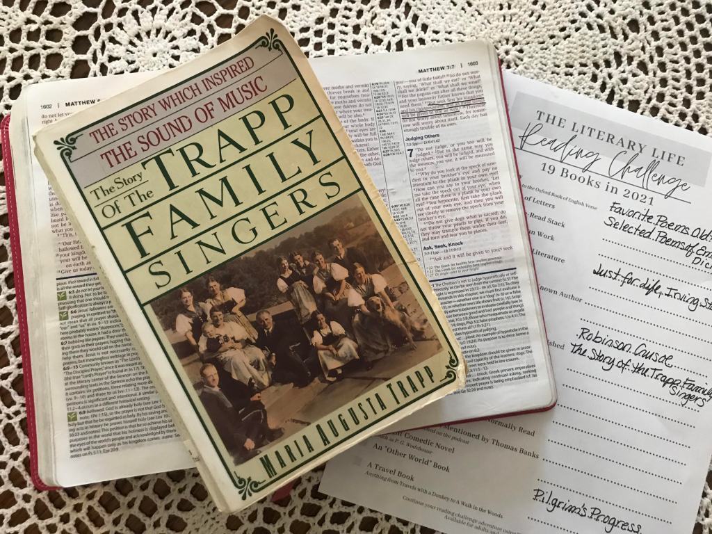 As a teenager, I eagerly picked up The Story of the Trapp Family Singers and just as eagerly tossed it aside. With no curtain-clad children frolicking through the mountains, no young lovers dancing in mist-shrouded gazebos, and no car-vandalizing nuns what was the point? But recently a friend told me how much she enjoyed it, and besides, I really needed to “Finish a Book You Started but Never Finished” for the Literary Life 19 Books in 2021 Challenge. (You see how much I’ve already strayed from my original plan!