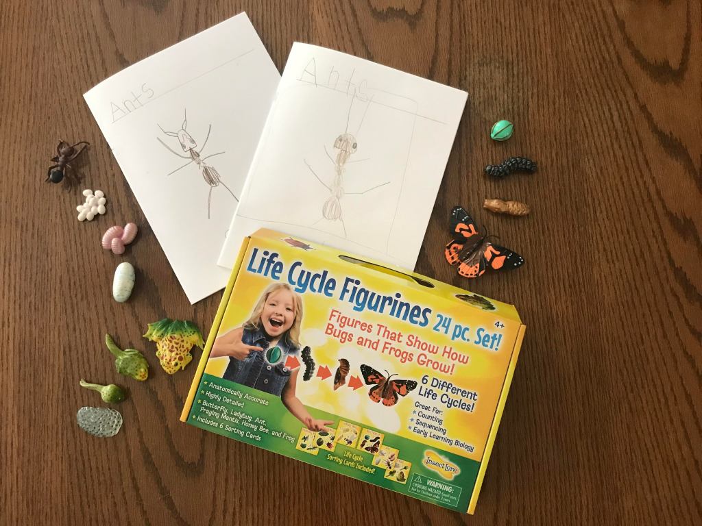 Finally, I loved watching the girls instruct their teddy bears in the marvels of insect metamorphosis with the help of this life cycle figurine set. The insects accompanied the girls down our slip-and-slide today. Can’t imagine what adventures are in store for them tomorrow!