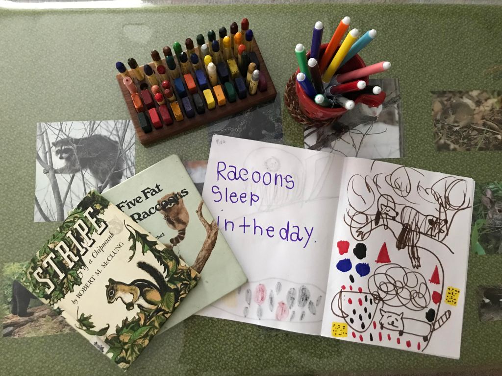 Science: I never knew how much fun science could be until I started studying with my kids. The books are wonderful and it’s so easy to find hands-on ways to experience what we’re learning. For our autumn term, we’re reading about all the animals that live right in our Big Woods: mice, raccoons, chipmunks, squirrels, deer, skunks, woodchucks, raccoons. Mama raccoon and her three babies have most helpfully come to steal our bird suet every night, allowing us plenty of firsthand observation. Today we sketched the little, suet-y footprints they left all over our deck.